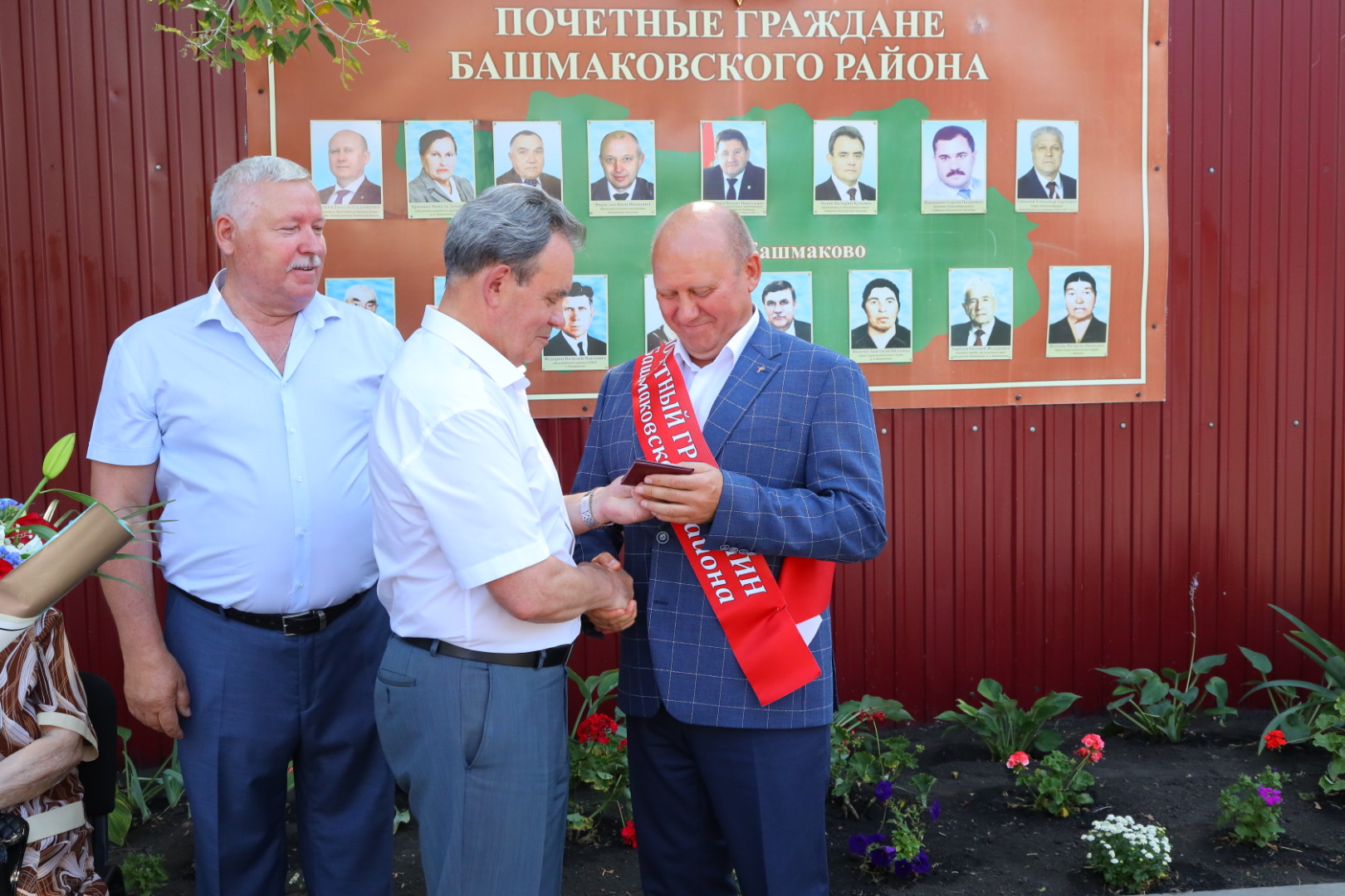 Вместе с главой администрации Тамарой Павлуткиной спикер регпарламента вручил свидетельство о присвоении звания «Почетный гражданин Башмаковского района» Вячеславу Космачеву, в течение 7 лет возглавлявшему Башмаковскую ЦРБ, избиравшемуся депутатом муниципального собрания представителей, депутату Законодательного Собрания пятого и шестого созыва, заместителю председателя правительства – министру здравоохранения Пензенской области.